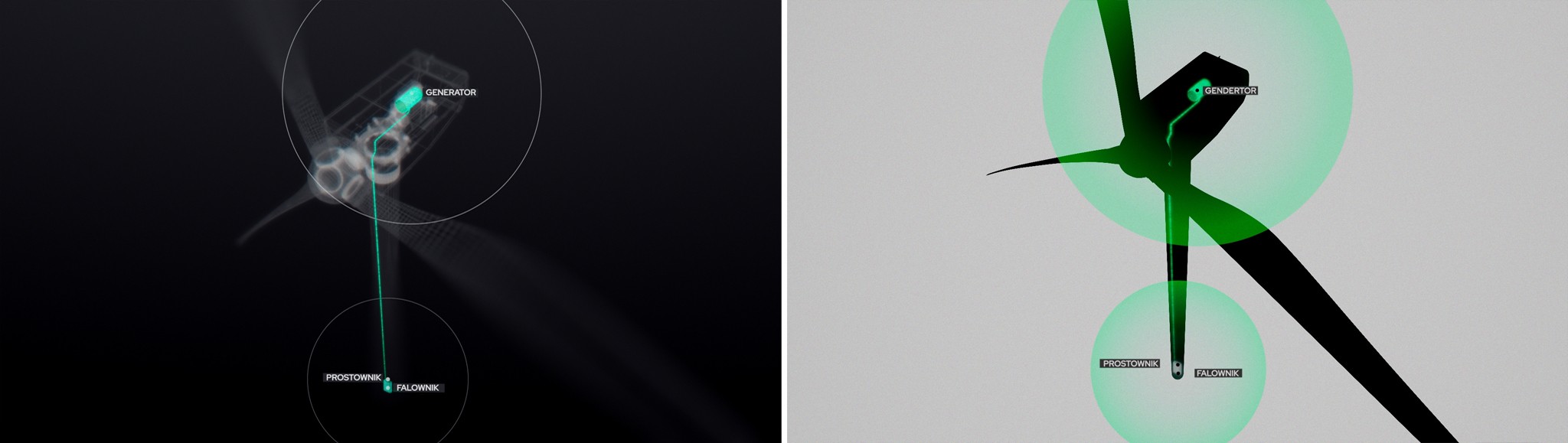 Animacja powstała na potrzeby prezentacji aplikacji VR dla wyższej uczelni, poświęconej tematyce odnawialnych źródeł energii (OZE). Naszym celem było w przystępny i klarowny sposób zobrazować zasadę działania turbiny wiatrowej, umożliwiając użytkownikowi szybkie i intuicyjne zrozumienie mechanizmu jej pracy.